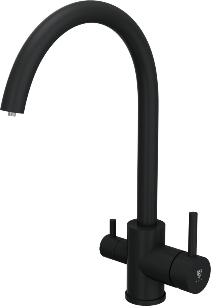 Смеситель для кухни с подключением к фильтру с питьевой водой RUSH арт. SUS9035-37Black с металлической ручкой изготовлен из нержавеющей стали SUS304 и имеет рычажное управление.