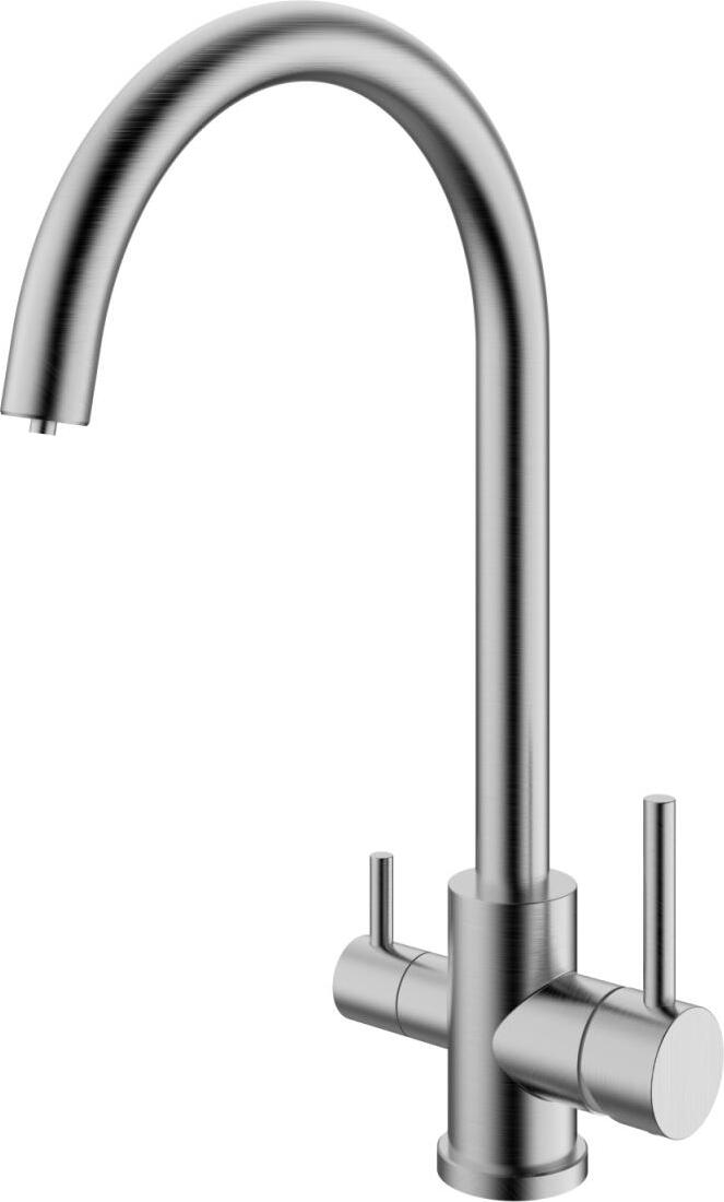 Смеситель для кухни с подключением к фильтру с питьевой водой RUSH арт. SUS9035-37 с металлической ручкой изготовлен из нержавеющей стали SUS304 и имеет рычажное управление.