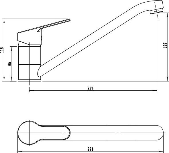 В смеситель установлен картридж D-35 с керамическими пластинами. Высота смесителя 116 мм. Излив поворотный 237мм. Высота излива до аэратора 127мм. Аэратор изготовлен из пластика с нержавеющим корпусом, угол наклона аэратора- 15 гр.