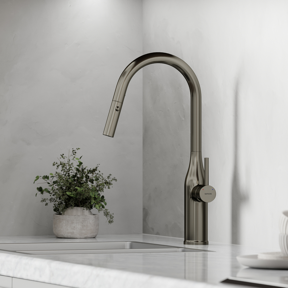 Смеситель Sancos Grand SC4002GG для кухонной мойки с вытяжным изливом, вороненая сталь