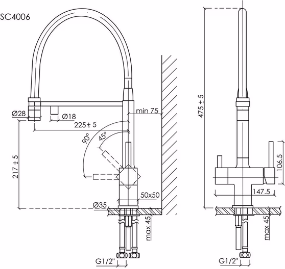 Смеситель Sancos Moro SC4006GG для кухонной мойки с гибким изливом вороненая сталь