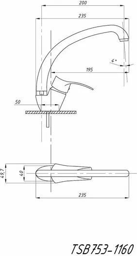 Смеситель Tsarsberg TSB-753-1160 для кухонной мойки