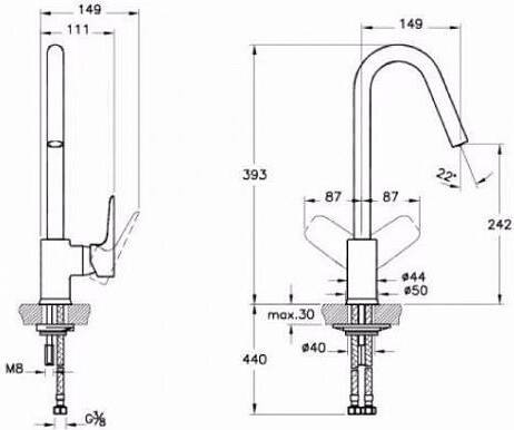 Смеситель Vitra X-Line A42115EXP для кухонной мойки УТ-00007546