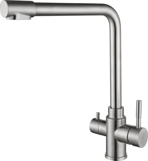 Смеситель для кухни с подключением к фильтру с питьевой водой RUSH арт. MS9035-33 изготовлен из нержавеющей стали и имеет рычажное управление.