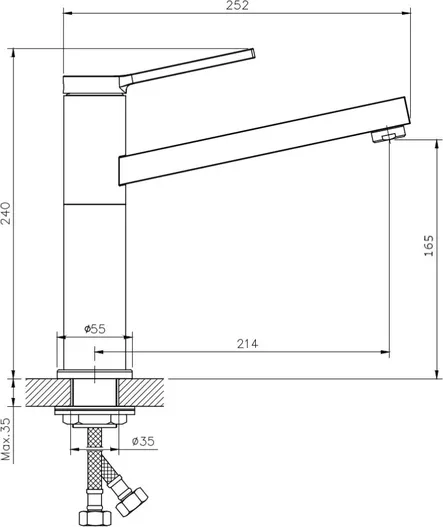 В смеситель установлен картридж D-35 с керамическими пластинами. Высота смесителя 240мм. Излив поворотный 214 мм. Высота излива до аэратора 165 мм.