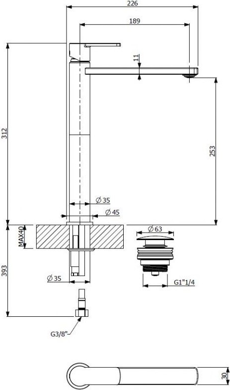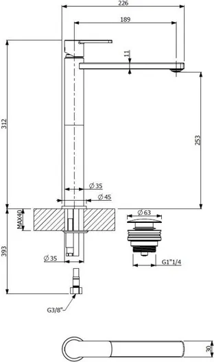 - Высота излива, см:25.3