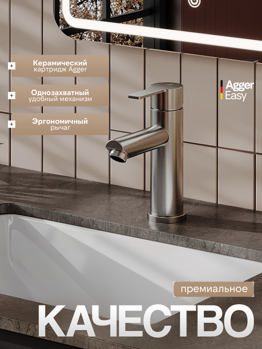 Смеситель Agger Easy A3102122 для раковины, сатин матовый УТ-00206484