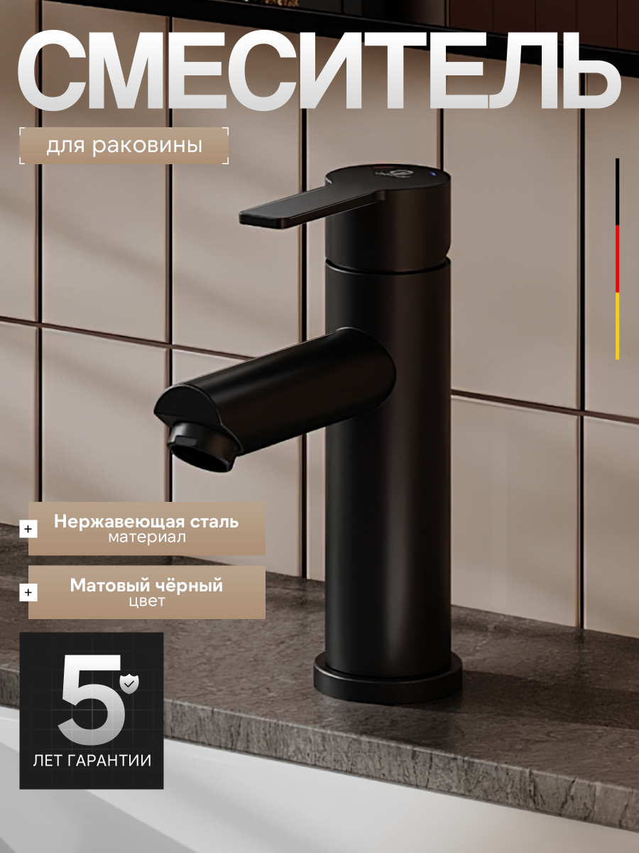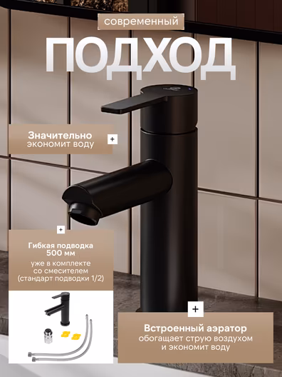 Однозахватный смеситель для раковины Agger Easy с фиксированным изливом гармонично дополнит интерьер ванной комнаты в современном или традиционном стиле. Фирменный керамический картридж Agger и эргономичный рычаг делают легким управление напором и температурой воды. Корпус изделия изготовлен из высококачественной нержавеющей стали, не подверженной коррозии от длительного контакта с водой. Покрытие в цвете матовый черный, за которым просто ухаживать мягкой салфеткой, нанесено методом порошковой окраски с многоступенчатой системой подготовки и высокотемпературной обработкой. Встроенный аэратор экономит воду и, обогащая струю воздухом, делает ее мягкой без брызг. Гибкая подводка 50 см.