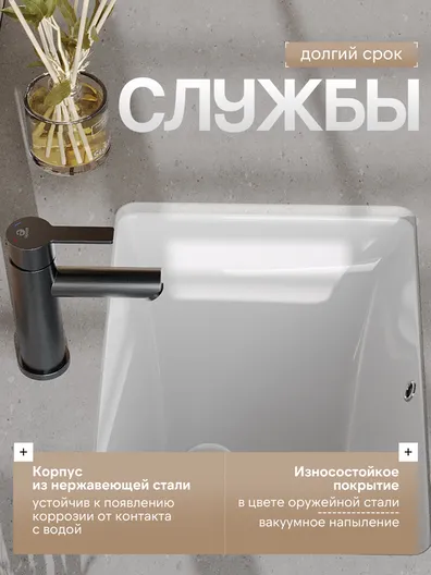 Однозахватный смеситель для раковины Agger Easy с фиксированным изливом гармонично дополнит интерьер ванной комнаты в современном или традиционном стиле. Фирменный керамический картридж Agger и эргономичный рычаг делают легким управление напором и температурой воды. Корпус изделия изготовлен из высококачественной нержавеющей стали, не подверженной коррозии от длительного контакта с водой. Износостойкое покрытие в цвете матовая оружейная сталь, за которым очень просто ухаживать мягкой салфеткой, нанесено методом вакуумного напыления. Встроенный аэратор экономит воду и, обогащая струю воздухом, делает ее мягкой без брызг. Гибкая подводка 50 см.