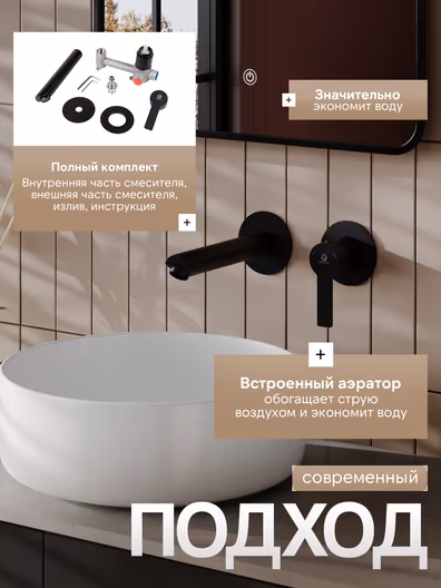 Смеситель Agger Easy A3172244 для раковины-чаши, черный матовый УТ-00206489