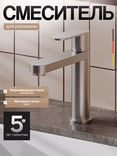 Однозахватный смеситель для раковины Agger Sweet с фиксированным изливом отличается четкими линиями и дизайном в стиле минимализм, он гармонично дополнит интерьер ванной комнаты в современном стиле. Фирменный керамический картридж Agger и эргономичный рычаг делают легким управление напором и температурой воды. Корпус изделия изготовлен из высококачественной нержавеющей стали, не подверженной коррозии от длительного контакта с водой. Износостойкое покрытие в цвете матовый сатин, за которым очень просто ухаживать мягкой салфеткой, нанесено методом вакуумного напыления. Встроенный аэратор экономит воду и, обогащая струю воздухом, делает ее мягкой без брызг. Гибкая подводка 50 см.
