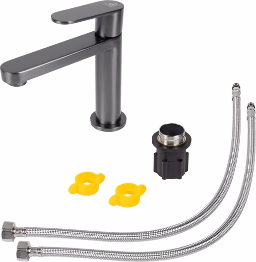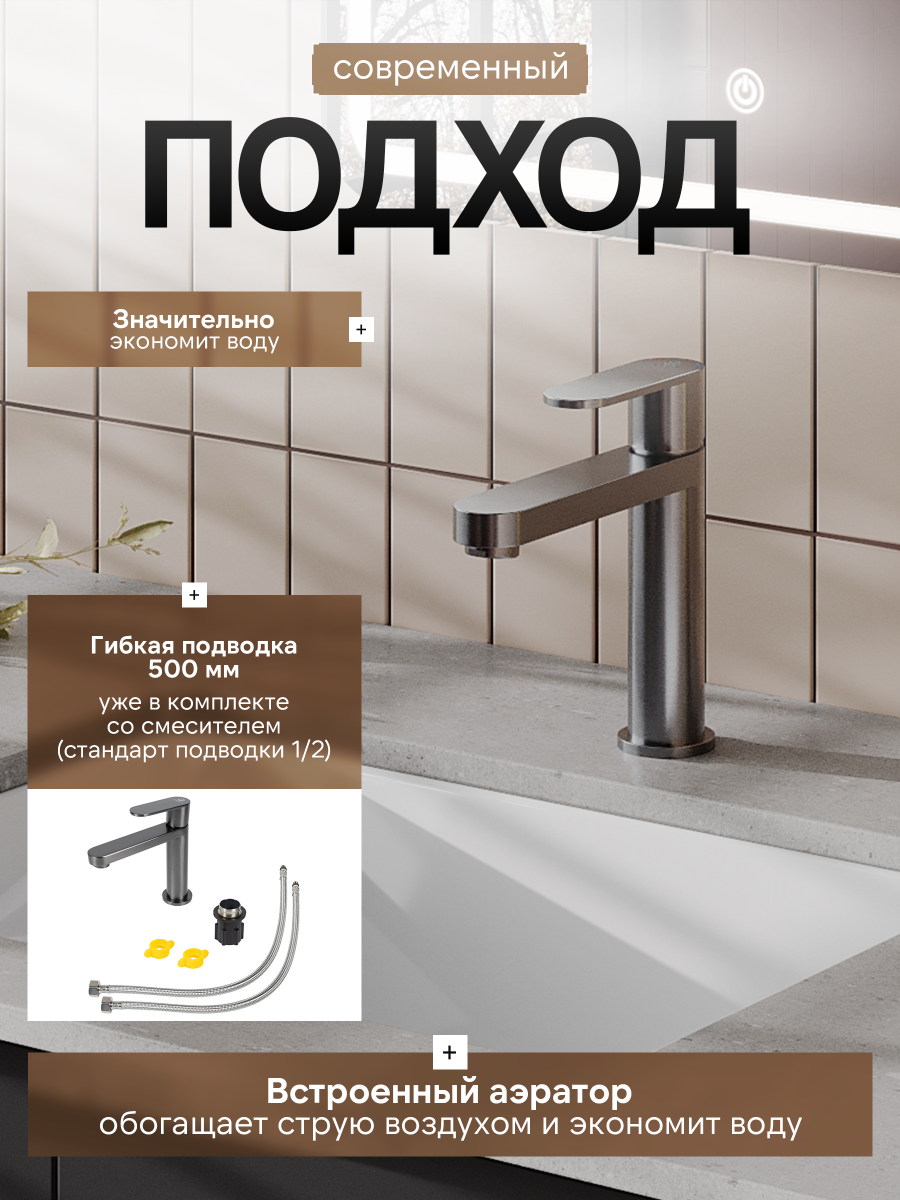 Однозахватный смеситель для раковины Agger Sweet с фиксированным изливом отличается четкими линиями и дизайном в стиле минимализм, он гармонично дополнит интерьер ванной комнаты в современном стиле. Фирменный керамический картридж Agger и эргономичный рычаг делают легким управление напором и температурой воды. Корпус изделия изготовлен из высококачественной нержавеющей стали, не подверженной коррозии от длительного контакта с водой. Износостойкое покрытие в цвете матовая оружейная сталь, за которым очень просто ухаживать мягкой салфеткой, нанесено методом вакуумного напыления. Встроенный аэратор экономит воду и, обогащая струю воздухом, делает ее мягкой без брызг. Гибкая подводка 50 см.
