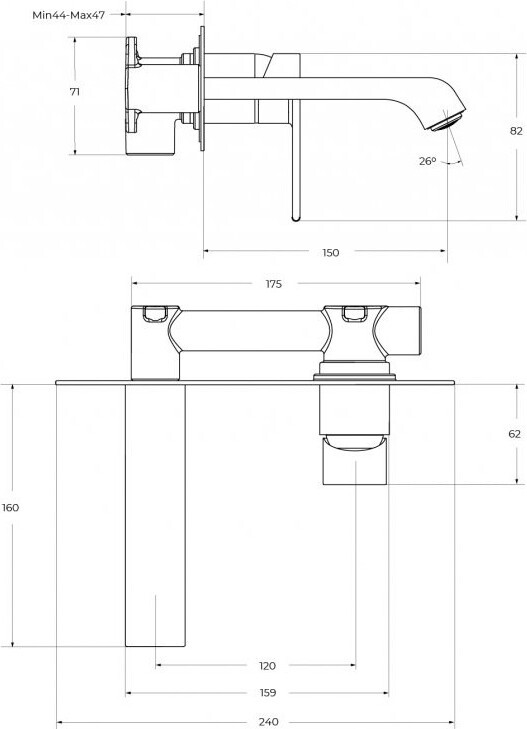 Смеситель для раковины без донного клапана встраиваемый