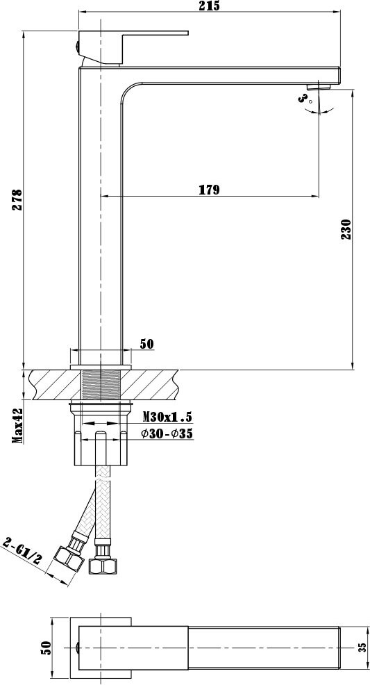 Смеситель Vincea Cube VBF-1C02GM для раковины вороненая сталь