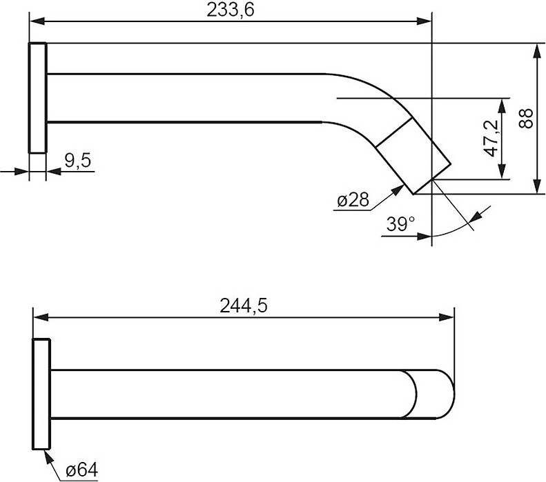 - Длина излива, см:23.36