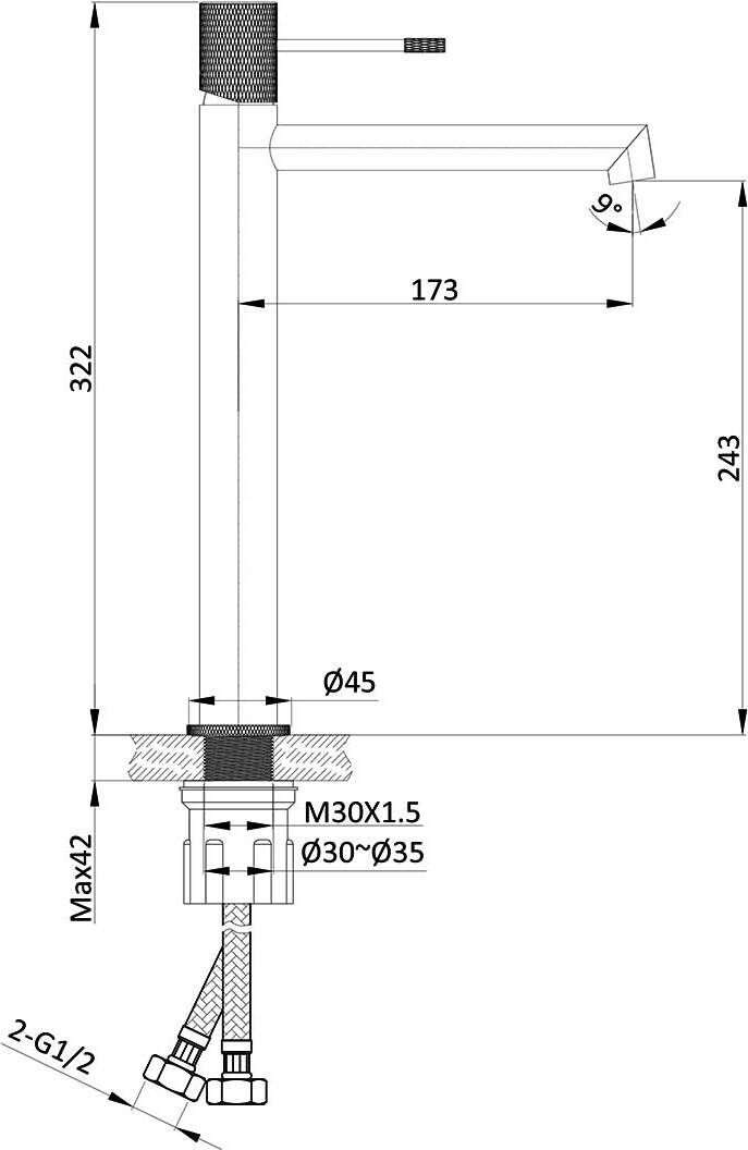 - Высота излива, см: