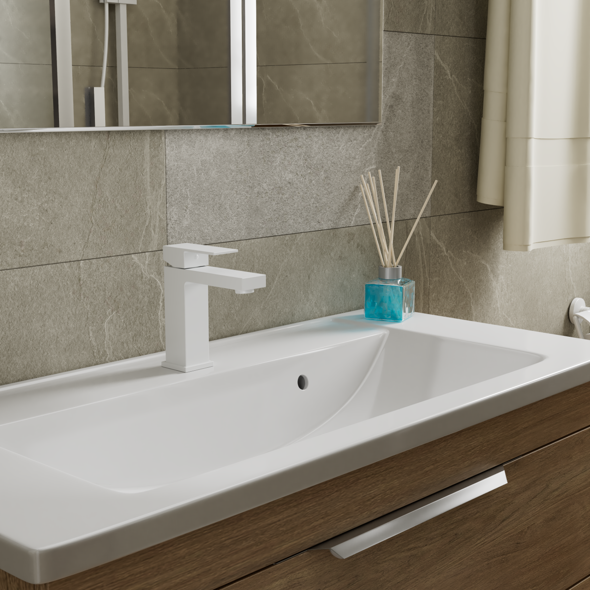 Смеситель для раковины D&K Bayern.Liszt DA1512108 Liszt - современный и актуальный дизайн, вобравший в себя ключевые тренды и отвечающий реальным запросам сегодняшнего дня с выбором популярного цветового решения матовый белый поможет создать идеальную кухню и ванную комнату каждому. - Бесплатное гарантийное обслуживание - 10 лет; - Смесители из латуни высокого качества, безопасны для людей и домашних животных из-за пониженного содержания свинца; - Блестящее хромированное покрытие обладает высокими защитными и декоративными свойствами; - Протестирован на 500 000 циклов включения, что составляет более 30 лет повседневного использования, семьи из четырёх человек; - Аэратор Neoperl экономит воду за счет смешивания с воздухом, струя становится ровнее и мягче, снижая уровень шума; - Гибкая подводка 40 см идёт в комплекте для быстрой установки.
