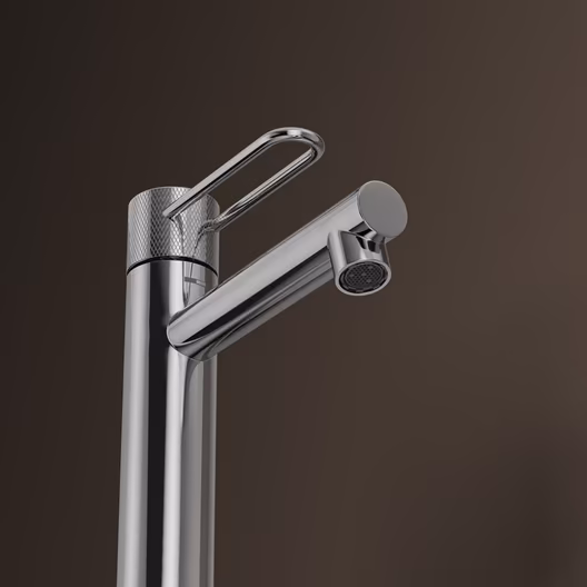 Смеситель для умывальника Duna – воплощение актуальных трендов в дизайне смесителей в безупречном исполнении: фрезеровка, изысканная ручка-петля, модные цвета и фактуры.