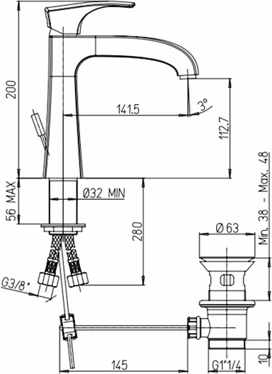 - аэратор, гибкая подводка, крепления, донный клапан, смеситель