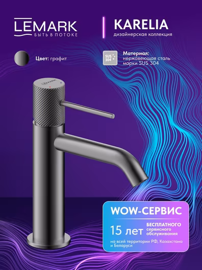 Смеситель Lemark Karelia LMF-2012S-GM, для раковины графит