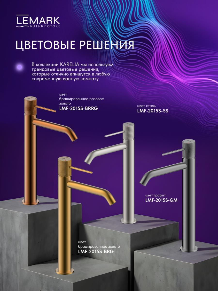Смеситель Lemark Karelia LMF-2015S-BRRG для раковины высокий, сталь УТ-00208289