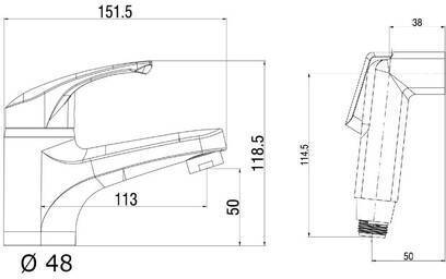 Смеситель для раковины OneLife P01-022cr с гигиеническим душем полимерный