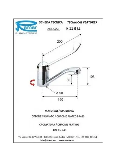 Смеситель Remer Kiss K11GLL для раковины УТ-00135106