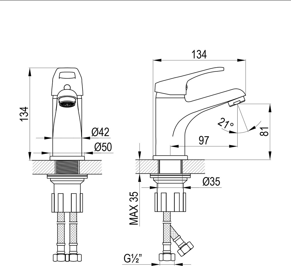 - Гибкая подводка ½” 35 см