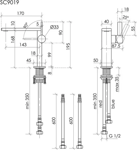 - Гибкая подводка в оплетке из нержавеющей стали, с увеличенной длиной - 600 мм