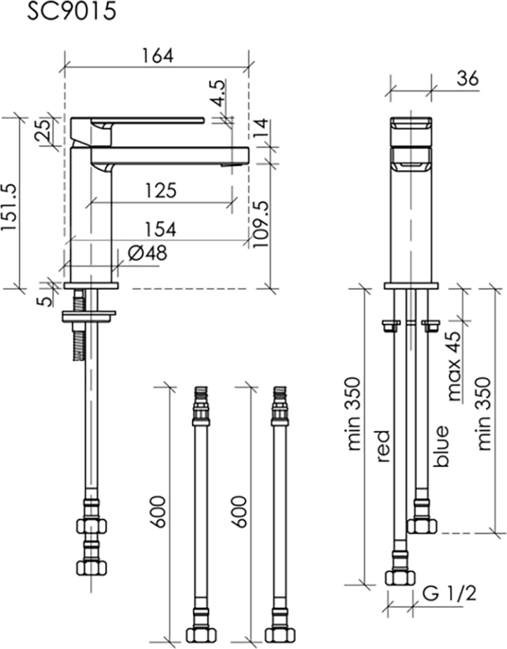 - Гибкая подводка в оплетке из нержавеющей стали, с увеличенной длиной - 600 мм