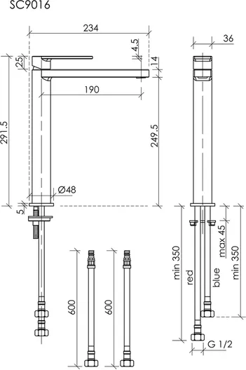 - Гибкая подводка в оплетке из нержавеющей стали, с увеличенной длиной - 600 мм