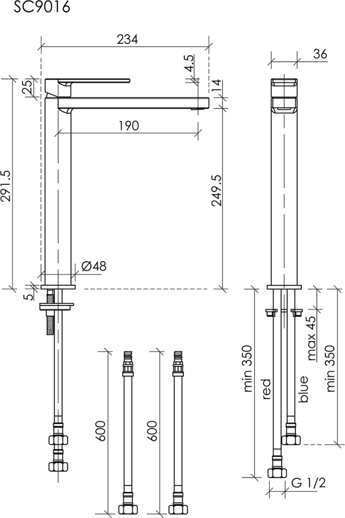 - Гибкая подводка в оплетке из нержавеющей стали, с увеличенной длиной - 600 мм