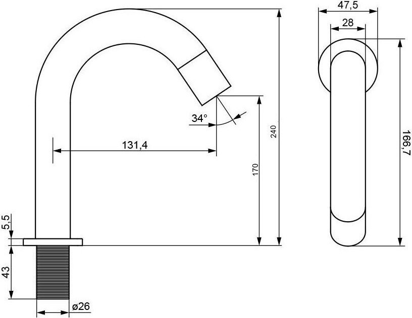 - Длина излива, см: