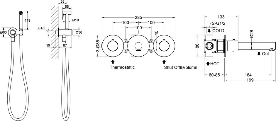 Встраиваемый смеситель с функцией подключения гигиенического душа Timo Saona 2383 предназначен для монтажа в твердой или полой стене. Встроенный блок может быть установлен с левым или правым подключением гигиенического душа. Гигиенический душ можно установить автономно на любом расстоянии от смесителя. Для использования гигиенического душа включать смеситель не требуется. Подача воды на гигиеническую лейку осуществляется нажатием кнопки, расположенной на корпусе держателя лейки. В смесителе установлен термостатический картридж для поддержания стабильной температуры воды в смесителе и гигиеническом душе. Подача воды и увеличение напора в смесителе осуществляется поворотом ручки расположенной справа (при установке душа слева). Сложностей монтажа не возникает при установке смесителя опытным сантехником. Основные преимущества встроенного смесителя: коммуникации, крепления и механизмы спрятаны в стену и видны только декоративные элементы, установить встроенный смеситель можно в любом месте. Внимательно изучите инструкцию по монтажу и эксплуатации.