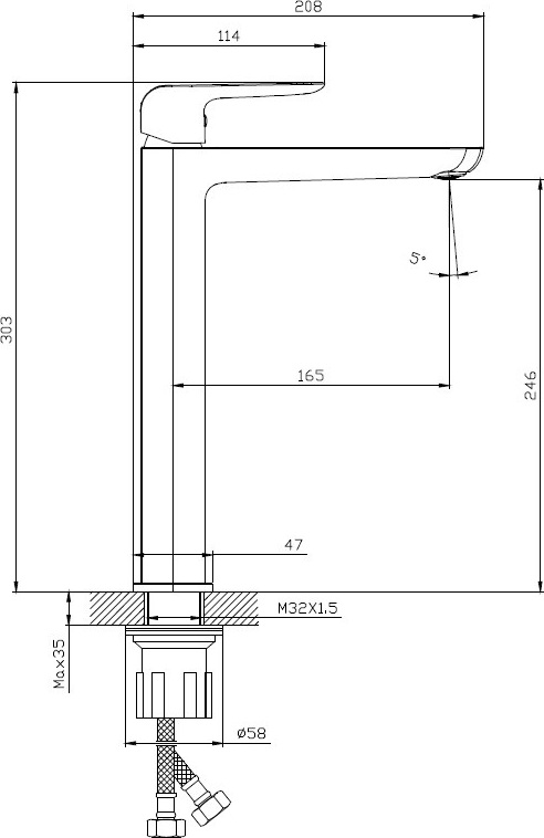 - Гибкая подводка 40 см идёт в комплекте для быстрой установки.