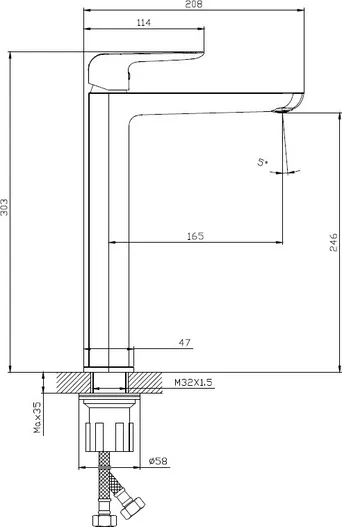 - Высота излива, см: