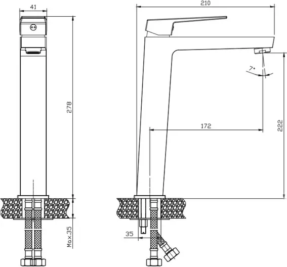 - Высота излива, см:22.2