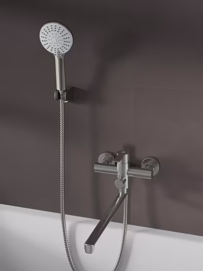 Однозахватный смеситель для ванны/душа с универсальным изливом и душевым набором Agger Easy украсит современный интерьер ванной комнаты. Корпус изделия изготовлен из высококачественной нержавеющей стали, не подверженной коррозии от длительного контакта с водой. Фирменный картридж Agger делает лёгким управление напором и температурой воды, а поворотный керамический дивертор переключит её направление с излива на душ даже при низком давлении. Износостойкое покрытие в цвете матовый сатин нанесено по технологии вакуумного напыления (PVD), на нем незаметны разводы от высохшей воды и отпечатки пальцев. Аэратор экономит воду и, обогащая струю воздухом, делает её мягкой и без брызг. В комплекте душевой набор: ручной душ d115 мм, высота 255 мм (3 режима), душевой шланг 150 см в металлической оплетке (с защитой от перекручивания), настенный держатель лейки с регулировкой угла наклона. Стандарт подводки - 1/2. Гарантия 5 лет.