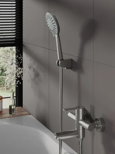 Однозахватный смеситель для ванны/душа с поворотным изливом и душевым набором Agger Easy украсит современный интерьер ванной комнаты. Корпус изделия изготовлен из высококачественной нержавеющей стали, не подверженной коррозии от длительного контакта с водой. Фирменный картридж Agger делает лёгким управление напором и температурой воды, а поворотный излив переключит её направление с излива на душ даже при низком давлении. Износостойкое покрытие в цвете матовый сатин нанесено по технологии вакуумного напыления (PVD), на нем незаметны разводы от высохшей воды и отпечатки пальцев. Аэратор экономит воду и, обогащая струю воздухом, делает её мягкой и без брызг. В комплекте душевой набор: ручной душ d125 мм, высота 260 мм (3 режима), душевой шланг 150 см в металлической оплетке (с защитой от перекручивания), настенный держатель лейки с регулировкой угла наклона. Стандарт подводки - 1/2. Гарантия 5 лет.