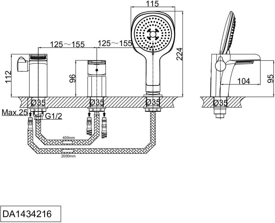 Смеситель D&K Berlin Steinbeis DA1434216 на борт ванны УТ-00133705
