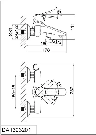 Смеситель D&K Rhein.Marx DA1393201 для ванны с душем