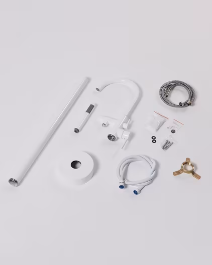 - аэратор, душевая лейка, держатель душевой лейки, душевой шланг, смеситель