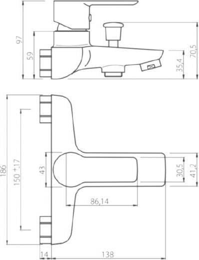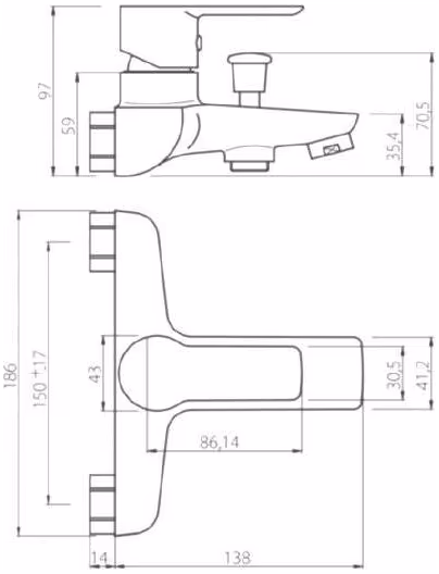 Смеситель Damixa Origin Elegance 841000000 для ванны с душем УТ-00107857