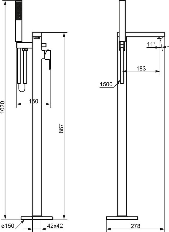 Смеситель Damixa Gala 535000300 для ванны с душем, черный матовый УТ-00162194