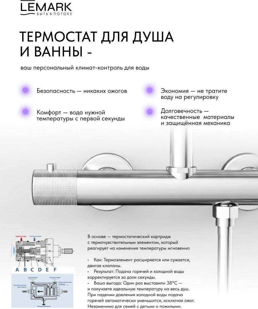 Смеситель Lemark Beluga LMF-8042B-C для ванны с душем термостатический, хром УТ-00208243