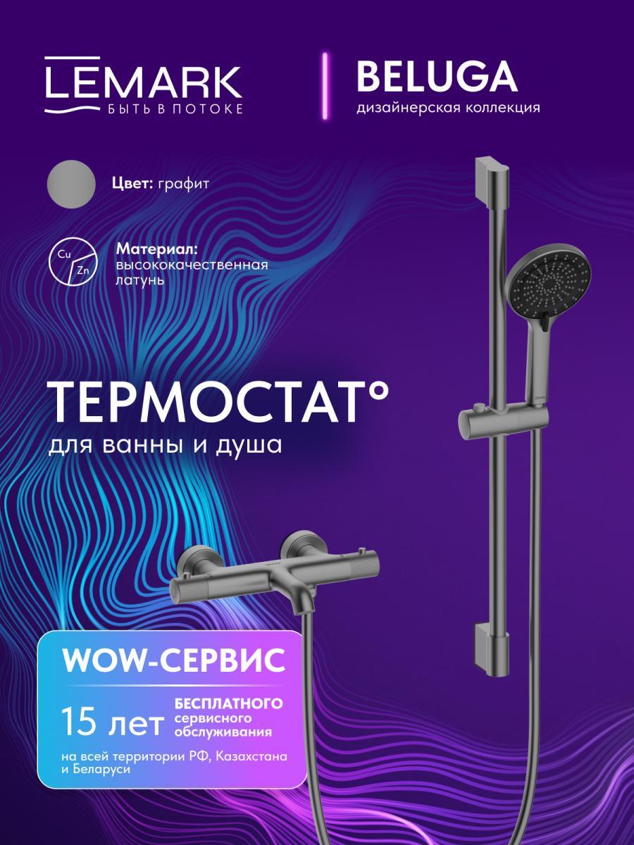 Смеситель Lemark Beluga LMF-8042B-GM для ванны с душем термостатический, графит УТ-00208244