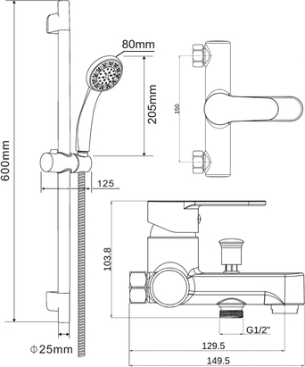 - душевая лейка, душевая штанга, держатель душевой лейки, душевой шланг