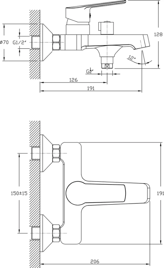 Смеситель для ванны RUSH арт. BA3935-44 из коллекции Balearic изготовлен из высококачественной латуни и имеет рычажное управление.