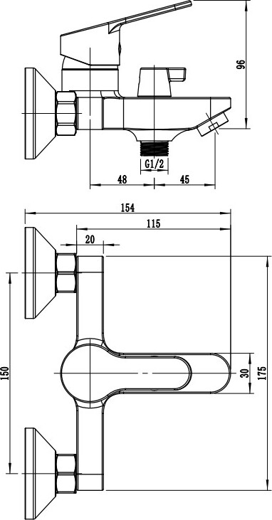 Смеситель для ванны RUSH арт. SK5720-44 из коллекции Sky изготовлен из высококачественной латуни и имеет рычажное управление.