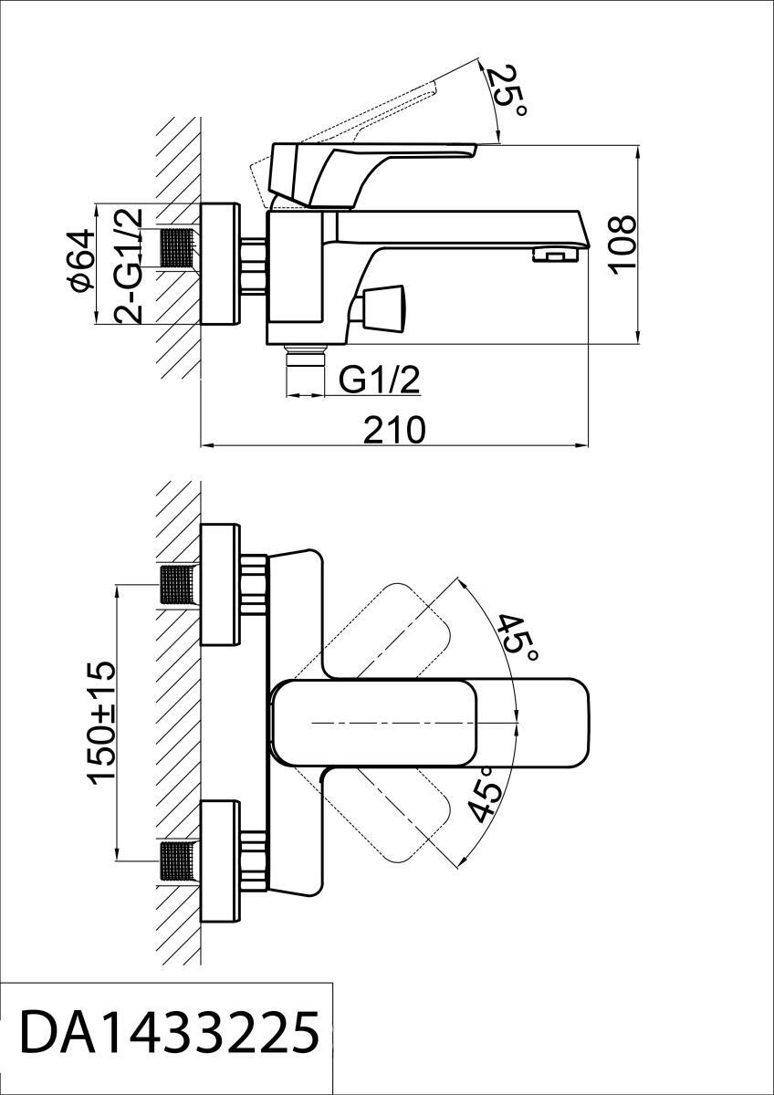 Длина излива: 210 мм. (от стены)